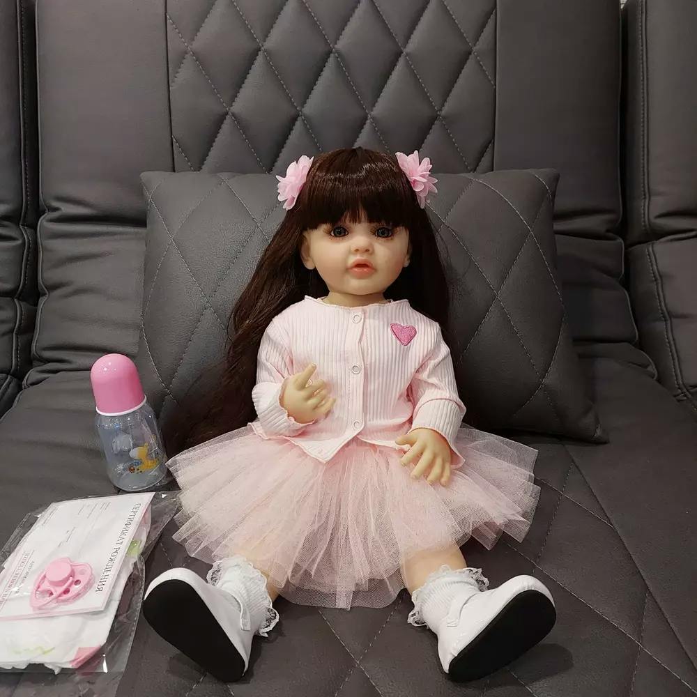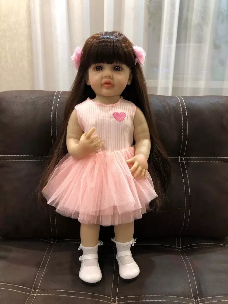 ❤ SIZE - 22''/ 55cm from head to toe, with a soft touch of the vinyl head, face and limbs, weighted body for a real baby feel and the kids can hand her to everywhere. ❤ HAIR - Hair can be washed and dressed. If the hair is a little messy, please use the special wig comb to take care of it gently. ❤ CLOTHES - Handmade. According to the doll size, The doll will come with random clothes. ❤ SAFETY CERTIFICATION - Conforms or exceeds the safety requirements of ASTM F963 and EN71 for ages 3+, which is safe for your children. ❤ GREAT FOR - Festival gifts, birthday gifts, children play with toys, grandpa or grandma accompany doll, lovers and collectors collection.