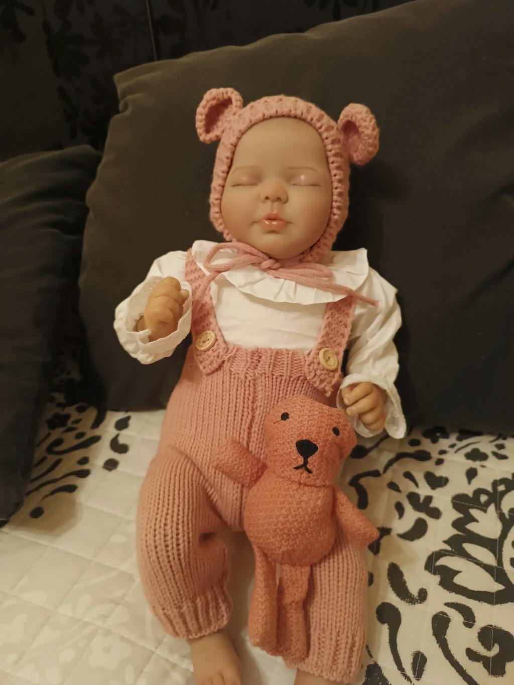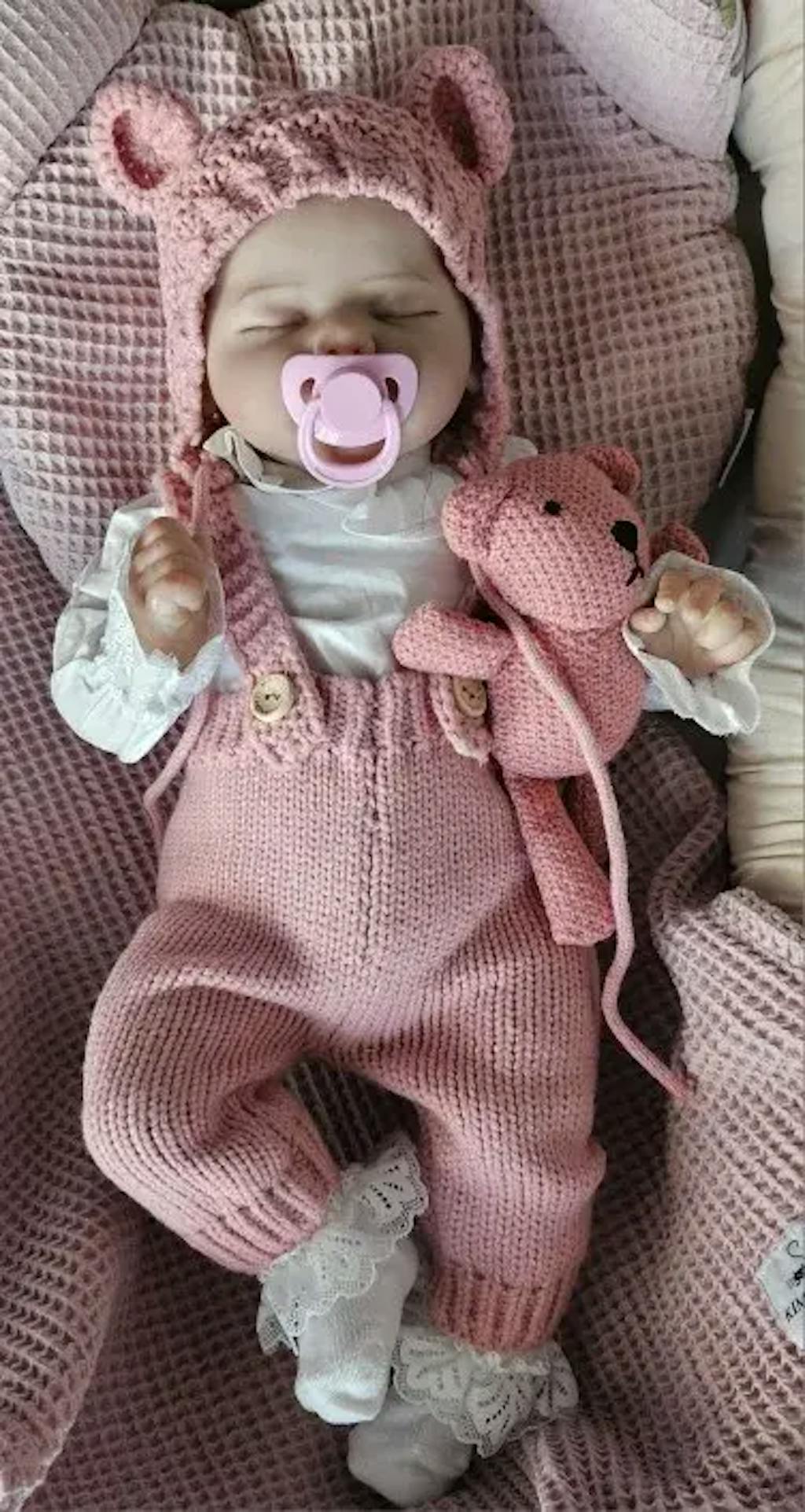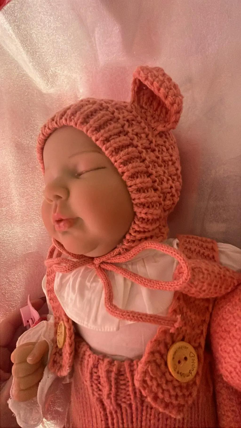Baby identification Height: 20 inches Weight: 1.4 kg Hair: Hand-painted hair Eyes: closed eyes(Eyes won't blink) Eyebrows: 100% pure hand-drawn Nails: 100% handmade nails, pink nail bed, translucent nails Drinking and wetting: No Series: Valentina