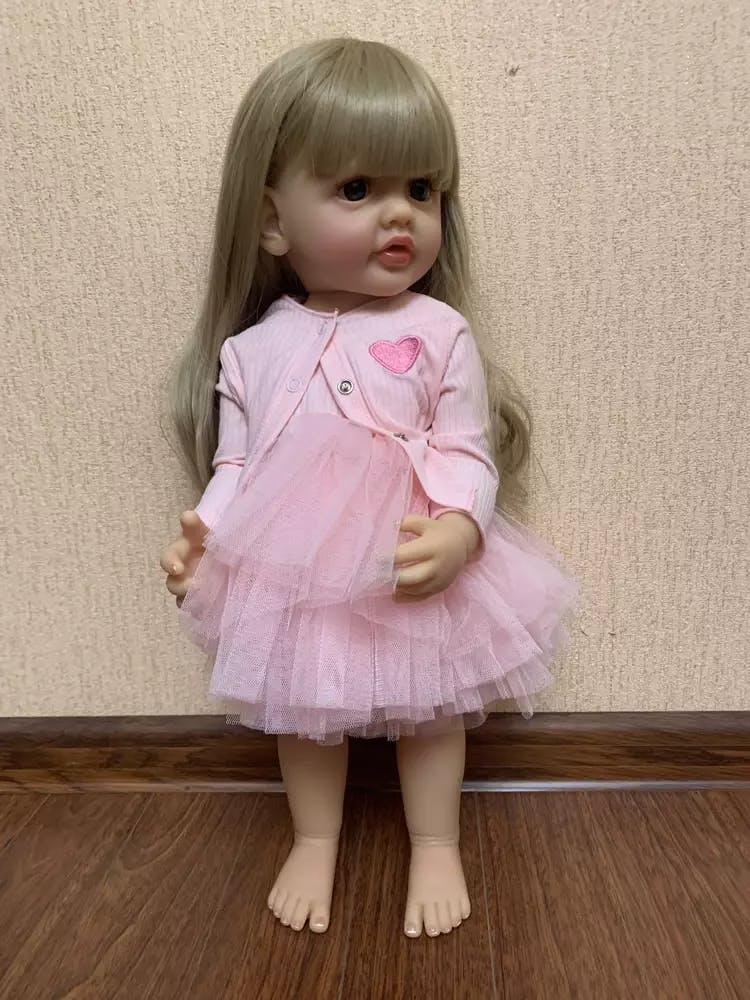 22 pollici occhi aperti lunghi capelli biondi reborn bambine con vestito rosa-Betty
