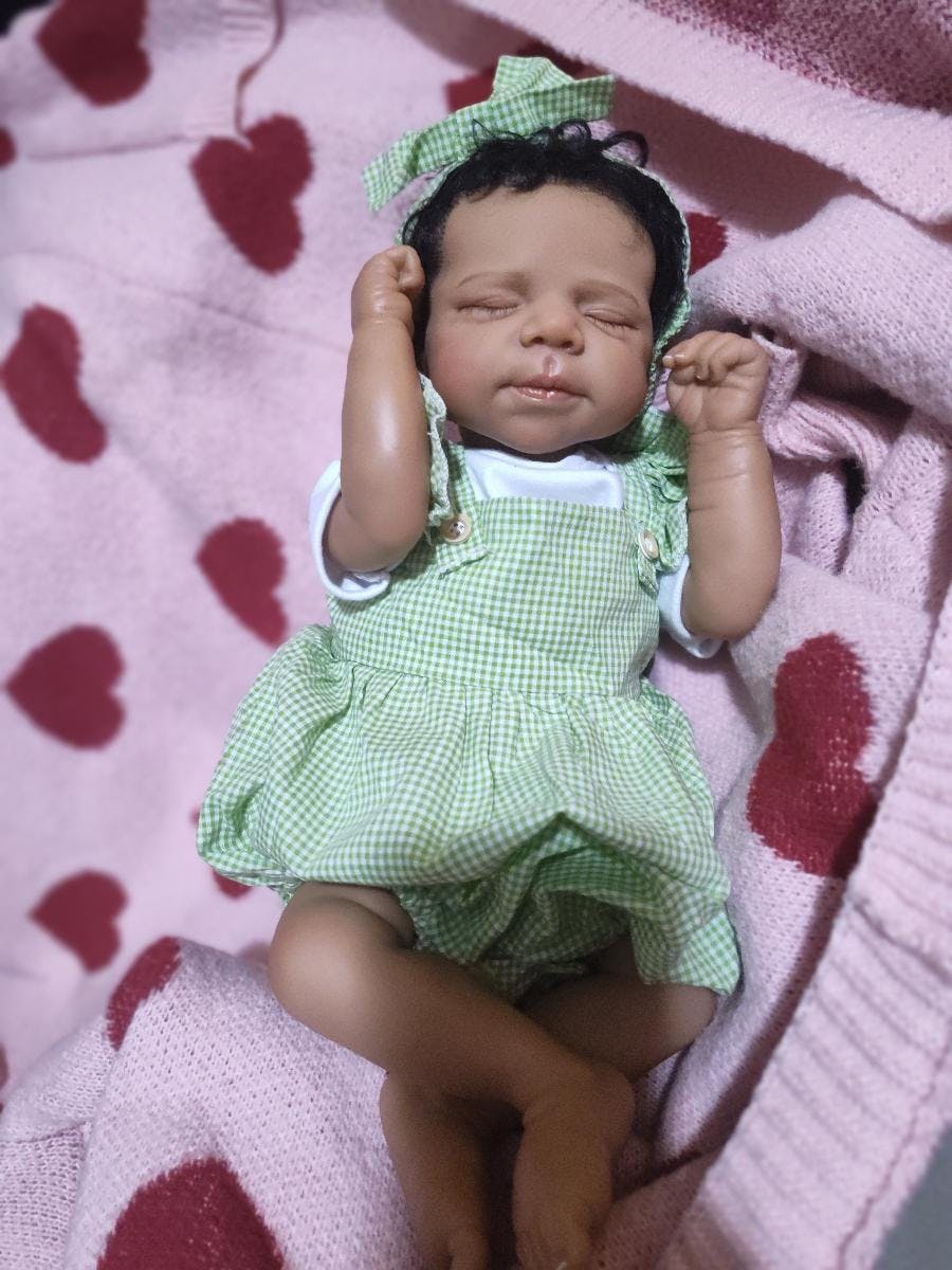 Bambola Reborn Sweet Janice da 19 pollici occhi chiusi pelle scura corpo morbido - Pascale